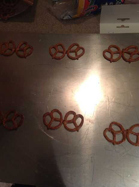 Lugar de pretzels de hornear para que se toquen en pares.