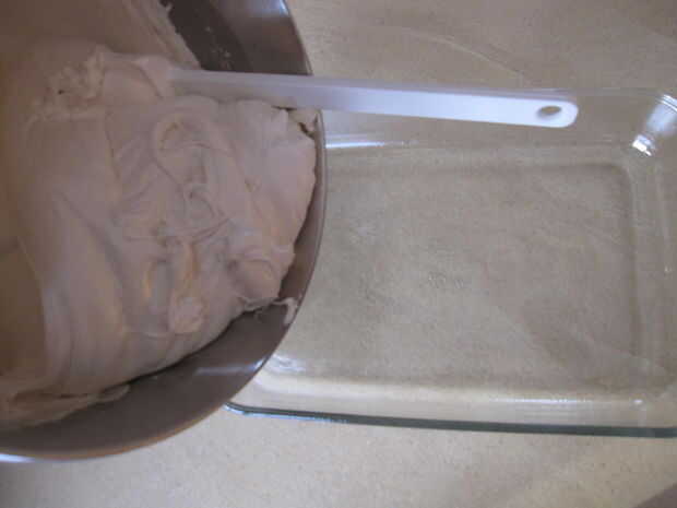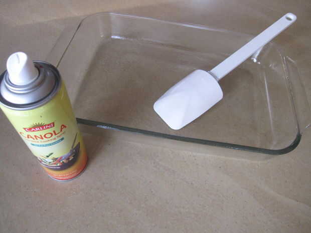 Ligeramente de aceite el pan y espátula y raspe la mezcla en la sartén.