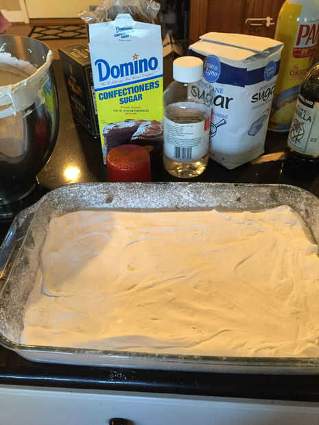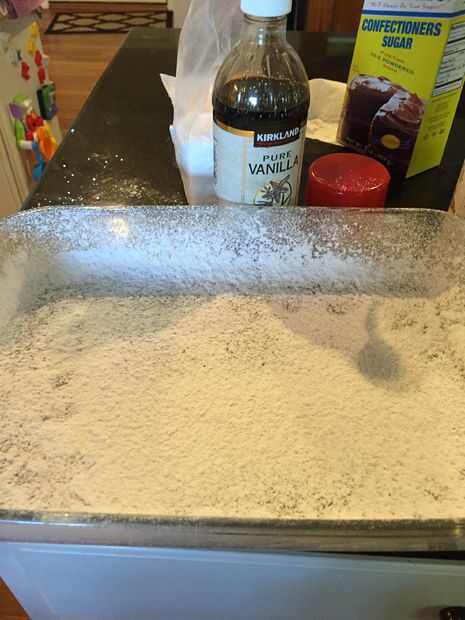 Tomar una cacerola de 9 x 13 y capa con algún tipo de aceite vegetal o aerosol. Rociar el envase entero con azúcar de confección. Vierta todos la pelusa de la melcocha en el plato y espolvorear con más azúcar de confección en la parte superior. El azúcar hace más fácil aplanar la parte superior de la melcocha en el envase. Ahora dejar endurecer durante 4-6 horas antes de cortar.