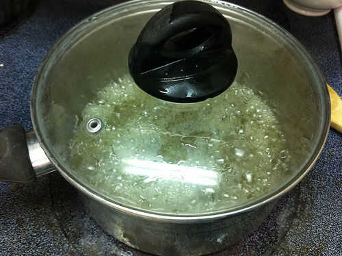 Calentar el jarabe de verbena de limón en una olla con el almíbar de maíz, revolviendo. Cuando comience a hervir, tápelo y déjelo hervir durante 3 minutos más o menos. Esto permitirá que el vapor que recoge a gotear hacia abajo los lados de la olla, se lava hacia abajo de los cristales de azúcar.