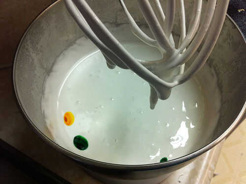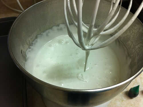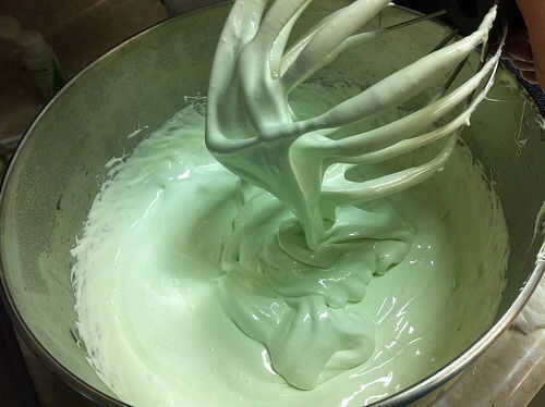 He añadido un par de gotas de alimentos para colorear aquí para realzar el color verde pálido. También puede Agregar una pizca de sal, extracto de limón o ralladura y ácido cítrico si quieres alterar un poco el sabor. Te recomiendo un poquito de sal en cualquier malvavisco. El ácido cítrico es ideal para bombones frutales.