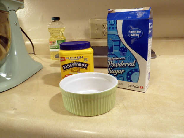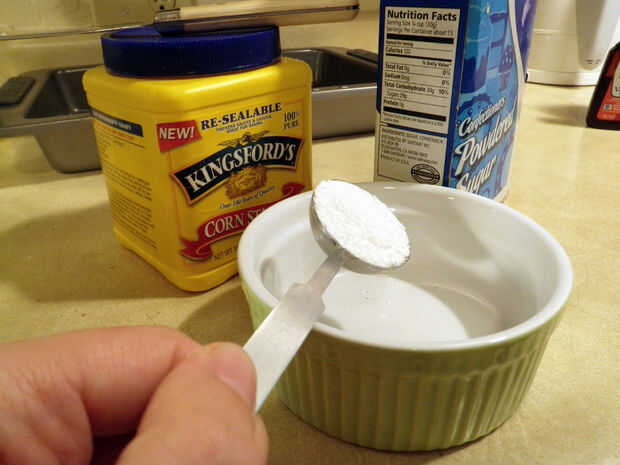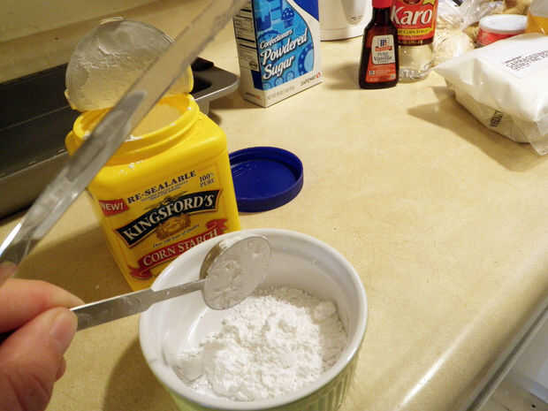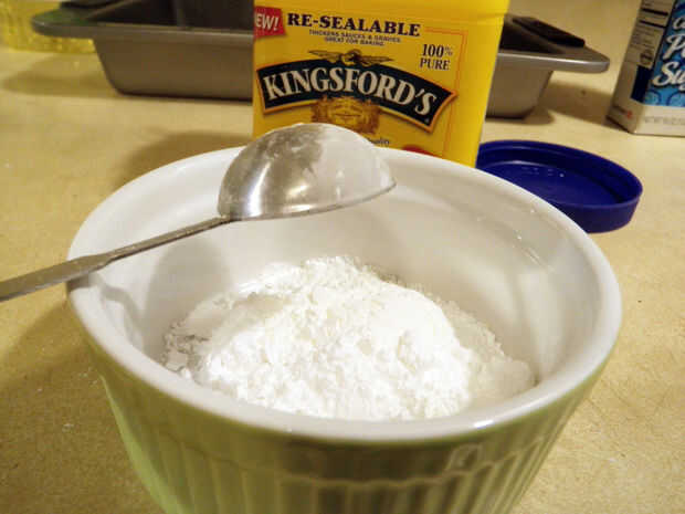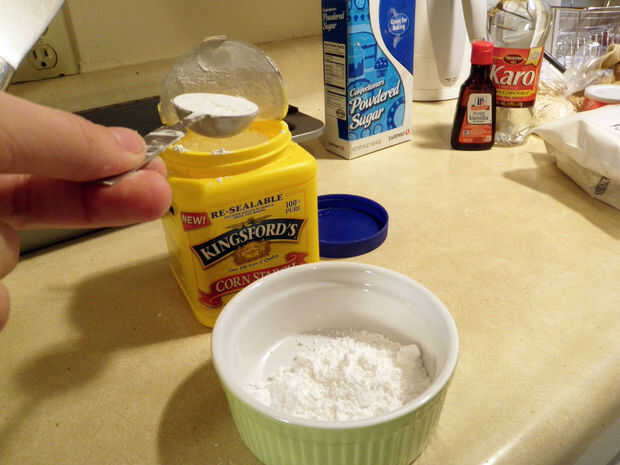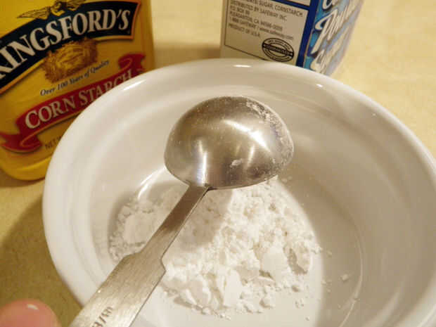 Mezclar sus dos cucharadas de azúcar y sus dos cucharadas de almidón de maíz.