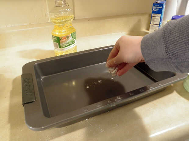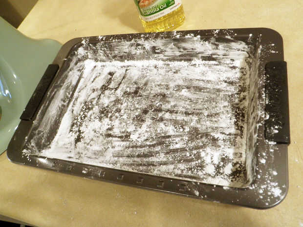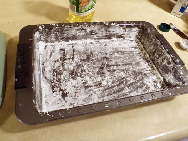 Ligeramente de aceite la bandeja y luego polvo pesadamente con la mezcla de azúcar en polvo.