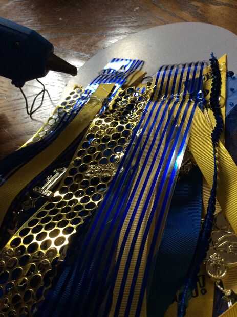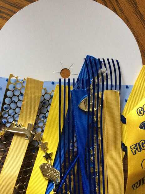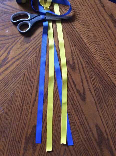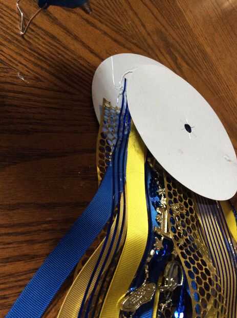5) Asegúrese de que las cintas no cubre el agujero o bien el tallo de la flor no va lanzó el agujero. Cintas de pegamento caliente y cinta de otros como decoración a la base de las mamás.