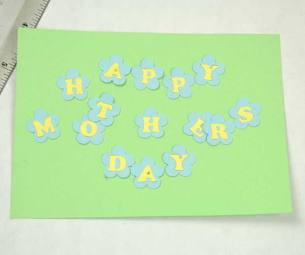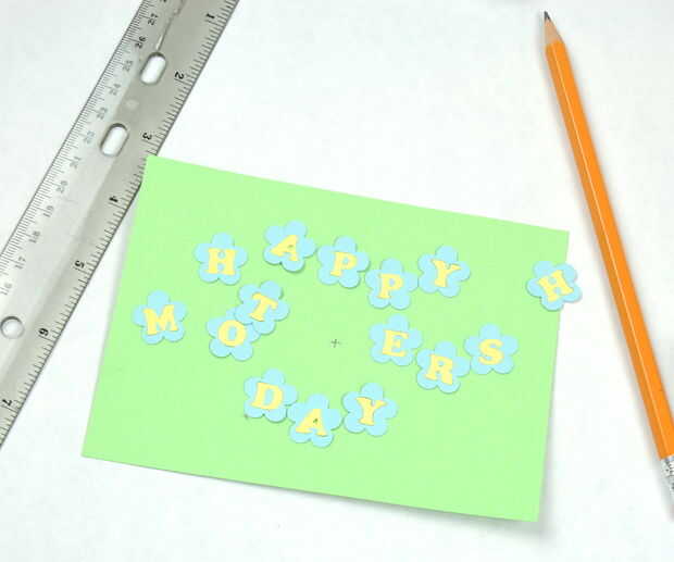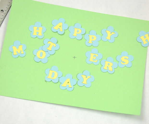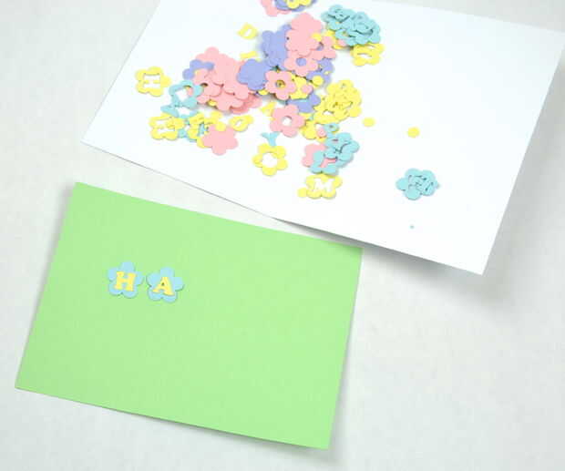 Una vez que tengas todas las cartas listo, planificar el diseño. Como siempre, cambiado un poco desde el diseño que hice en silueta. En lugar de alineándolos, pensé que el ajuste va mejor zig zaggy. Una vez que la disposición general, fui exigente y encontró el centro de la tarjeta para poner la "H" y luego trabajó hacia fuera de allí. No tienes ser exigente.