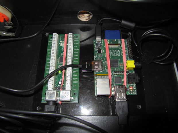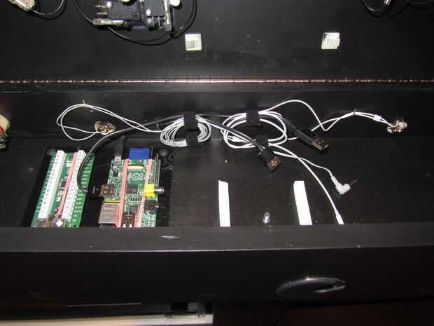 Antes de correr los cables, debemos averiguar donde el iPAC, RPi y proyector van a ir. El problema es que mientras que el iPAC tiene agujeros de montaje agradable, el IPC no. Así que sugiero que si no estás usando el IPC, sólo conseguir algunos separadores y atornille el iPAC a la parte inferior de la caja del regulador. Sin embargo, las cosas se complican un poco más con el IPC de montaje. Hay una variedad de casos de RPi que usted podría conseguir, el taladro y atornillar la caja al chasis. Sin embargo, me preocupa un poco el flujo de aire y el IPC consigue demasiado caliente. Esto puede ser infundada, pero mejor seguro luego lo sentimos.