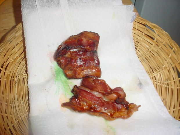 1 get 1, cosas la sartén caliente y cocine el tocino Lo consigue tan crujiente como quieras y quitar a toalla de papel. Guardar el elixier líquido de los dioses en una jarra y refrigerar, dejando una cucharada más o menos en el pan.