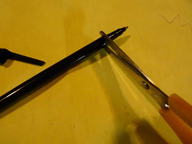 Si usted necesita usar tijeras, introduzca las hojas en la pequeña grieta y tire lejos del cuerpo de la pluma.