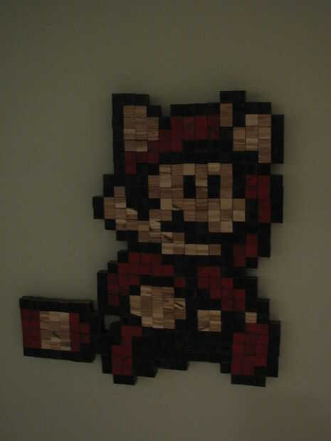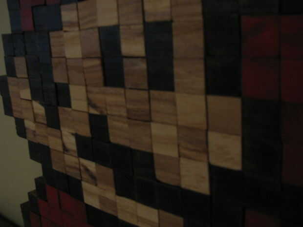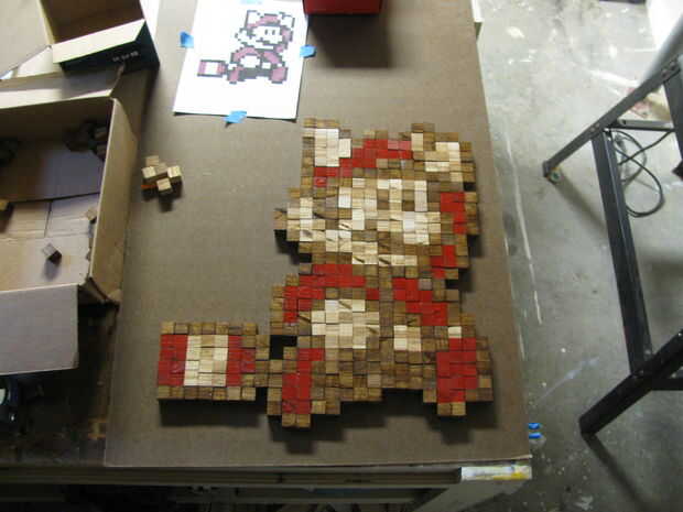 Te recomiendo poner todo hacia fuera en un pedazo de madera para asegurar que se ve bien. Supuse que mis medidas eran perfectos y retirar los cubos y manualmente medición y cortan la pieza. Mal. Una vez que pone a todos de sus cubos, traza el exterior con un lápiz. Luego, utilizando una sierra de vaivén, corte alrededor del borde en el interior de la línea. Esto le ayudará a ocultar la madera prensada. Pintar el borde de la tabla con acrílico negro.