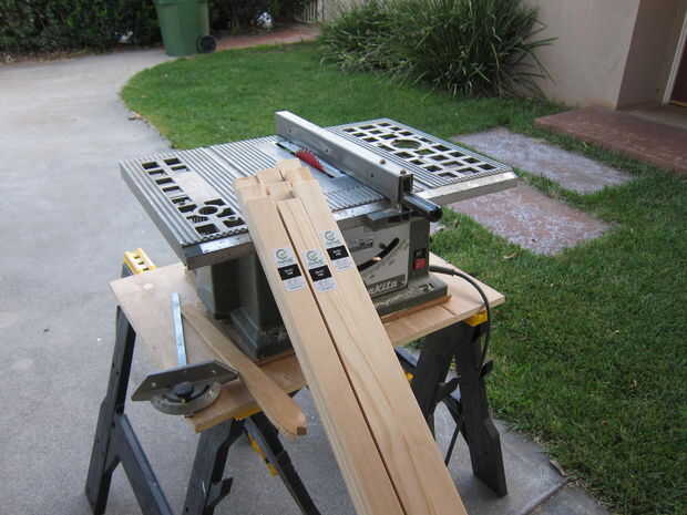 La obra en este Instructable necesito hacer 1" bloques. Mis tiras de pino seleccione son 1 1/2 pulgadas de ancho por lo que tengo que rasgar hacia abajo un poco. RIP para ser sólo un poco más a su objetivo, el planar se encargará del resto. Una vez que los tableros rotos, ejecutarlos a través de un plano para asegurarse de que cada Consejo solo es el grosor mismo.