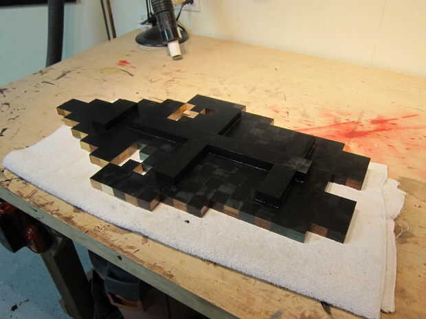 Entonces pinto negro posterior al acabar y es! Ahora tienes una pieza pixel madera manchada con clase!