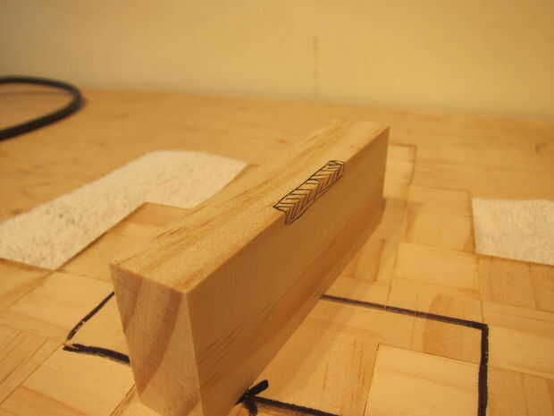 Después de sellar voltee la pieza y cortar unas tiras de madera para hacer una estructura de soporte para la pieza. Aquí puede ver las piezas simple pegadas a la espalda. Estas hacen la pieza más fuerte y también hacen la pieza pop de la pared un poco (que creo que se ve impresionante).