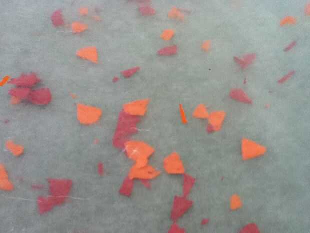 Después de haber distribuido las virutas uniformemente, doblar la otra mitad del papel de cera a las virutas.