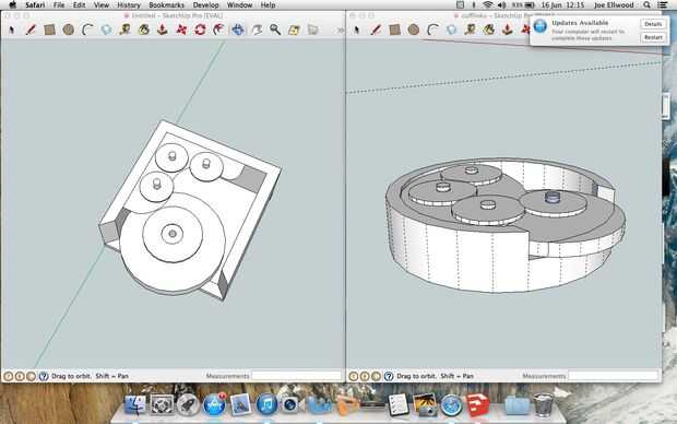 Siempre aconsejo hacer una imagen de cad de lo que haces, para obtener dimensiones y trabajar si todo funcionará en conjunto, el primero es el diseño final mancuerna del cad, no se molestan en crear una imagen en cad de los tallos, ya que eran demasiado complicados para mi capacidad limitada de la cad, la siguiente es una imagen en cad con dimensiones en él y el último es los dos diseños que me he decidido entre , al final fui por la versión circular, como prefería él, decidí simplificar un poco, por lo que sólo 3 dientes en el estante, en lugar de 4, cuatro, sentía cuando tenían las dimensiones adecuadas, haría que los gemelos sienten demasiado masificada.
