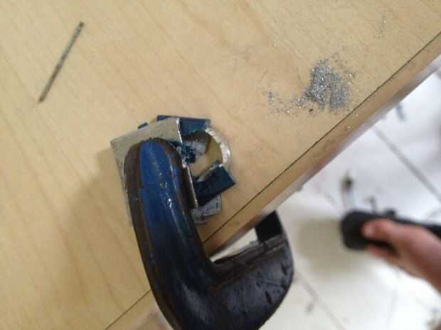 presentar entonces una brecha en los anillos 4mm, el agujero debe ser Plaza y archivo 2mm abajo y presentar una diferencia de 11mm, esto hará que el espacio para la corona de latón de 10mm en el espacio, por lo que se puede girar con el dedo. para que no dañe el aluminio, envuelva los pedacitos que no quiere lejos de archivo en cinta del pato, luego coloque una abrazadera pequeña en él para fijar a la mesa. Archivo con un archivo plano, tienden a presentar la rutina a cada lado para que me den algunos parámetros, luego limar, asegúrese de que usted presenta una línea limpia y recta.
