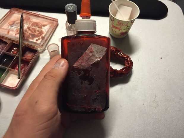 Ahora poner en algunas caricaturas "groovy" y comience a agitar, sacudir y sacudir más. Después de lo que parece una eternidad, tienes una preciosa botella de secado la sangre que se mantendrá ver mojado incluso después de que se seque.