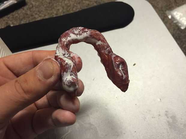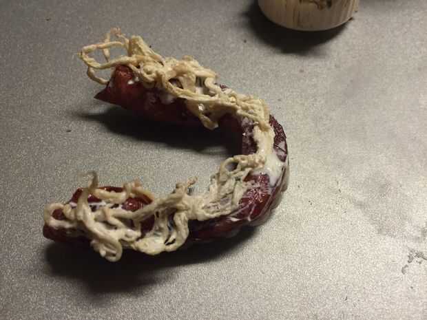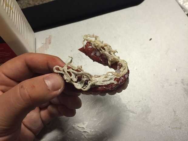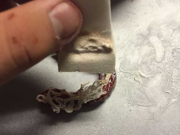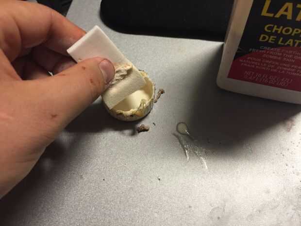 Tome su Nurnie y oprima al látex asegurándose que cubre una gran mayoría de la carne para darle un aspecto más realista.