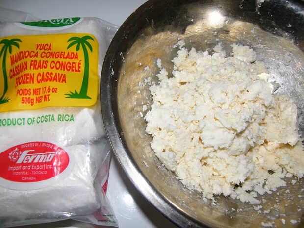 500 g congelado yuca (puede utilizar la yuca fresca y rallar, por supuesto), descongelados, rejilla a pasta fina