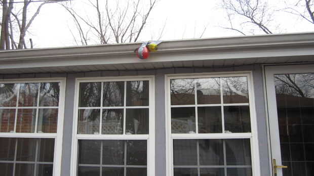 Hay muchas maneras que usted puede adjuntar el globo y el mecanismo de estallido. Sólo usé cinta adhesiva para conductos. Siempre y cuando esté seca la superficie del globo se pegue cinta adhesiva que está muy bien. Para globos más grandes, puede lazo de la cinta bajo el balón y cuna para que no pop bajo su propio peso. Cinta del conducto también permite hacer pequeños ajustes a la posición de todo.