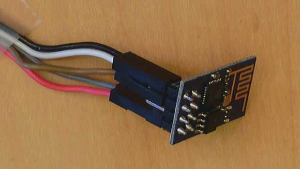 Hay muchos sitios que muestra cómo conectar el ESP8266. Elegimos conectar como se muestra aquí. El código de colores es el siguiente: