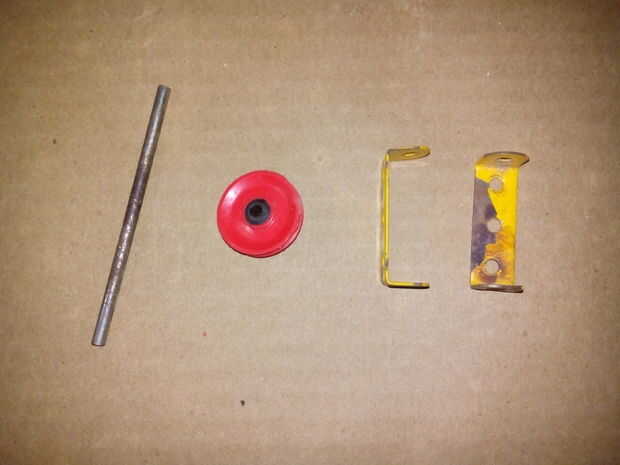 VARILLA de acero pequeño 1) (x1), polea (x 1), ANGLE(x2) de placa de acero de 3 agujeros.