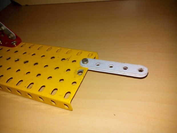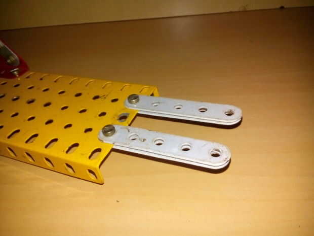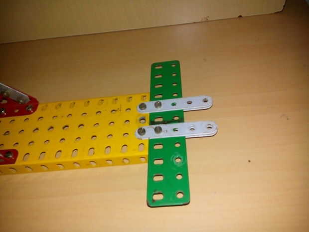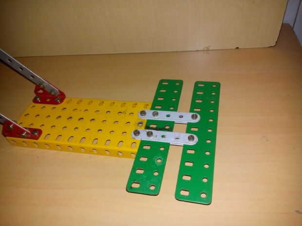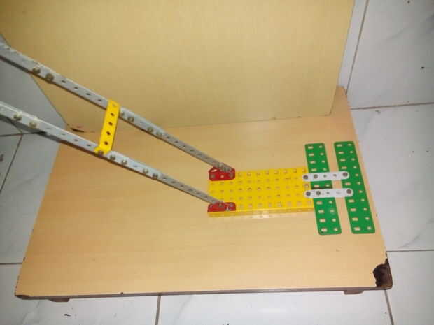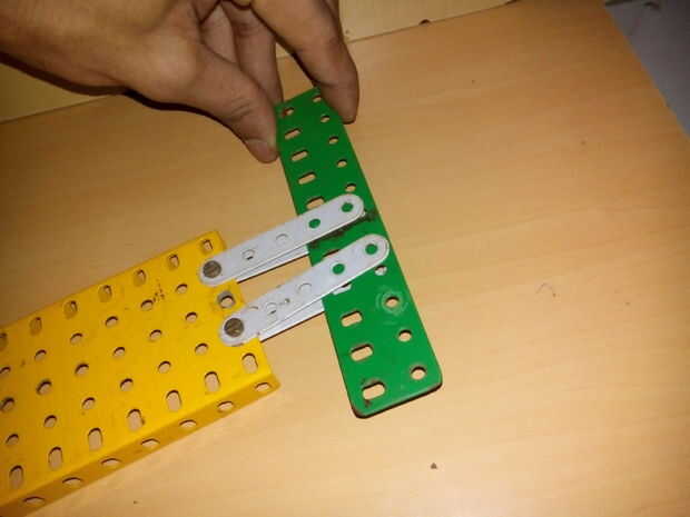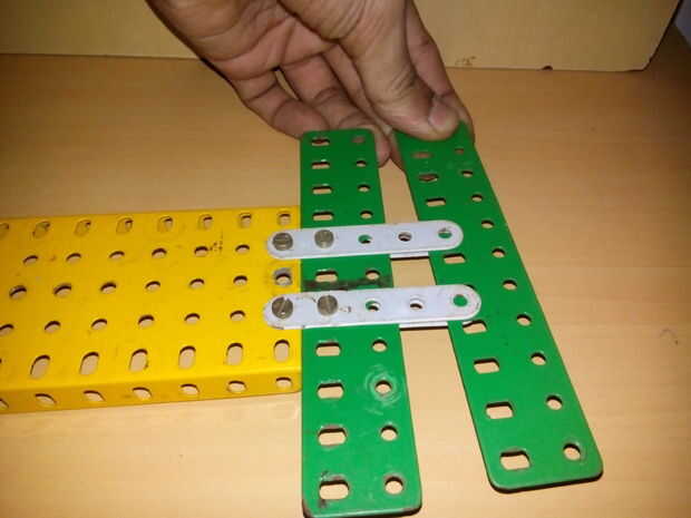 DESPUÉS DE TERMINAR LA ESTRUCTURA SUPERIOR DEL EDIFICIO, ACABO DE AÑADIR ALGUNAS PIEZAS MÁS EN EL FINAL DE VIGA DE ACERO PEQUEÑO. FIJAR LAS PLACAS DE DOS 5 AGUJEROS ACERO EN VIGA DE ACERO CON TORNILLO Y TUERCA. FIJE LA PLACA DE DOS 5 AGUJEROS ACERO OTRA EN PEQUEÑA VIGA DE ACERO CON TORNILLO Y TUERCA.