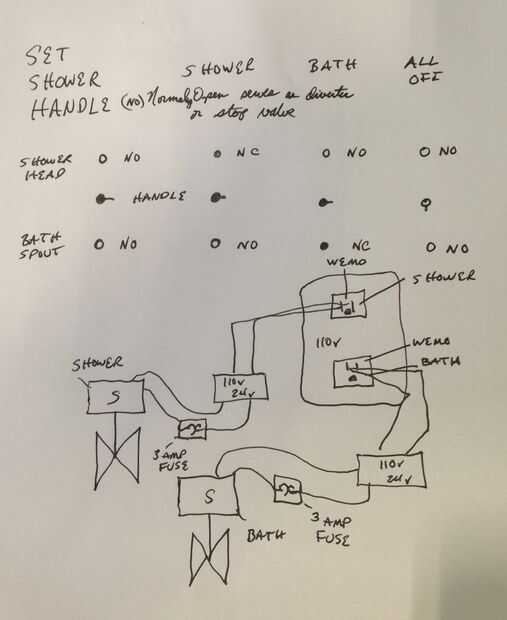 No dejes que el cableado desalentarle, si puede una lámpara de alambre o instalar un termostato de recambio puede hacerlo! El diagrama de cableado acomoda dos interruptores y con la adición de válvula de salida de baño, esto sirve como una válvula de cierre, caso contrario, si usted sólo, modifica la cabeza de ducha necesitas el enganche el desviador para recibir agua en la regadera.