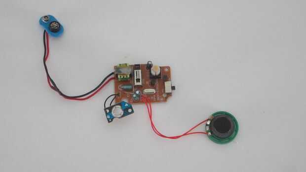 Usted necesita conectar a la salida del receptor. En este caso, estoy usando un walkie talkie y la salida está conectada a un altavoz. La señal de salida es una serie de pulsos que son enviados al terminal positivo del altavoz. El terminal negativo del altavoz está conectado a la tierra del receptor. Tenemos que conectar a ambos de estos cables. Así que corte los cables a los altavoces. Entonces me la pelaron el aislamiento de los extremos.
