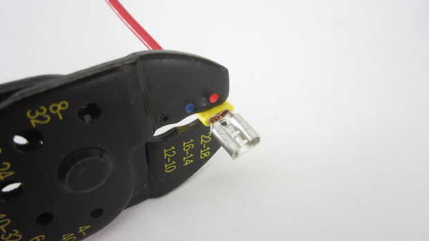 En el otro extremo de los cables, engarzado en el 12-10 medidor de conectores. Conecte a los terminales del relé que se unen a la bobina del relé.