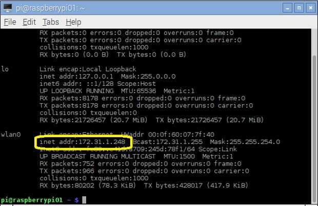Usted necesitará saber dirección la frambuesa Pi IP conectarse remotamente a él. Esto se puede hacer ejecutando el siguiente comando desde una terminal: