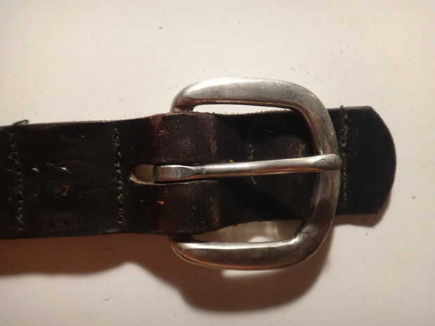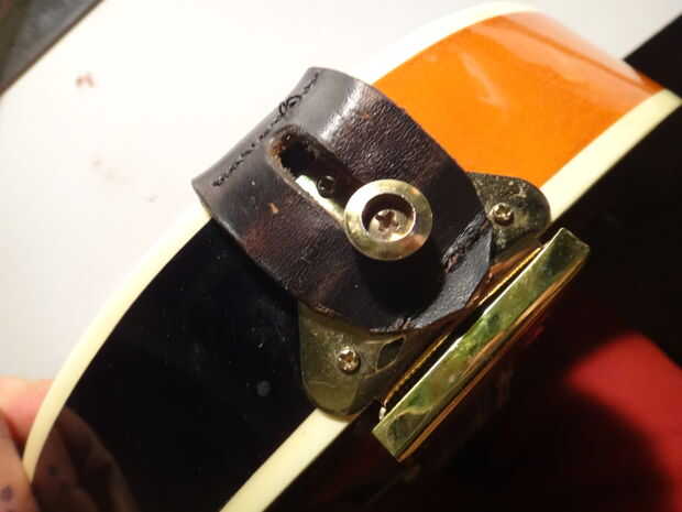 Tomar la parte donde se lleva a cabo el cierre, con un cuchillo y convertirlo en el cuero. puede haber algunos remaches, que usted puede a través fácilmente. Hay una muesca poco agradable donde el corchete de la hebilla se ajusta a través de, y es tamaño perfecto para el cono de mando. Si usted necesita, puede utilizar un cuchillo y corte una muesca. Asegúrese de cortar la muesca hacia el extremo más corto, ya que se mantiene unida por el peso de la mandolina/tensión de su cuerpo. Use un cuchillo y cortar cualquier exceso de material. Asegúrese de dejar suficiente para ser robustos.