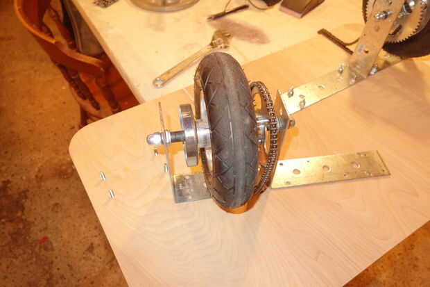 - Ampliar este agujero con una Dremel o un archivo para hacerlo 0,40" y probar que se ajustará el eje de la rueda.