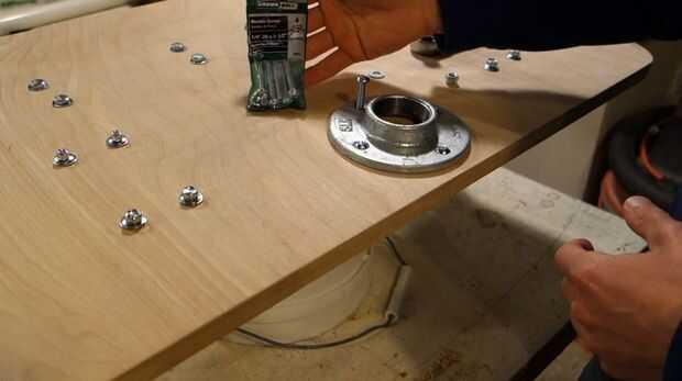 - Taladro 1 1 1/8"(usando una broca de pala) para que los cables pasar a través de esta 1-1/2 en. Brida piso galvanizada.