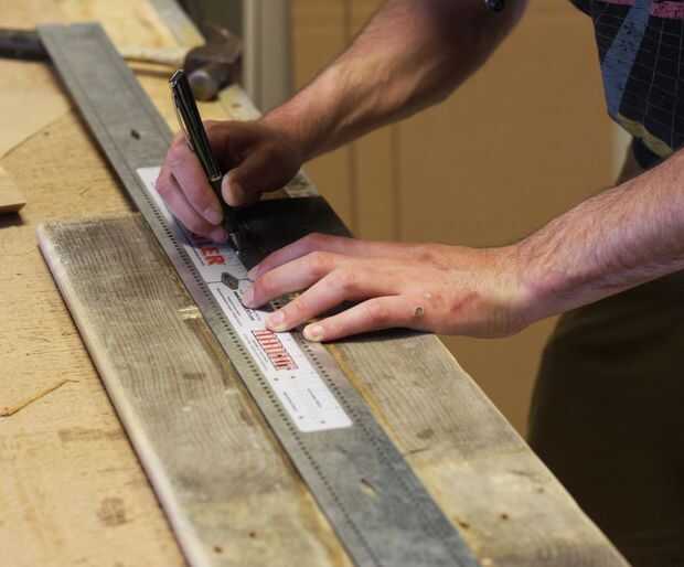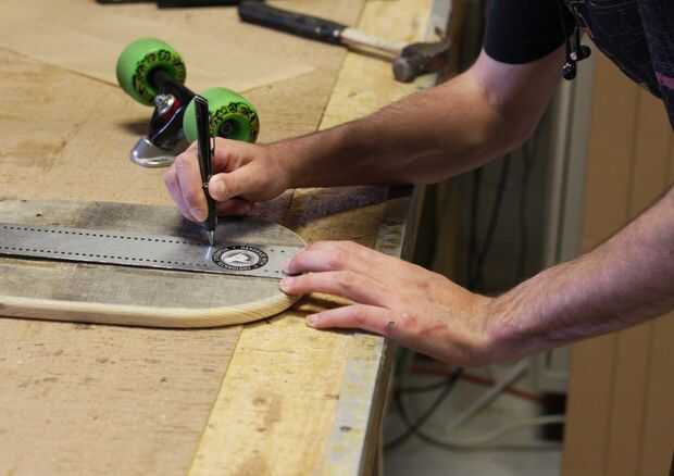 Usando la RockitRuler y la línea central, marcamos en la parte inferior de la cubierta de nuestra plantilla de papel, hemos sido capaces de diseño el carro agujeros perfectamente cuadrados entre sí. Con un 3/16" Taladro broca y un accesorio de la cubeta, hemos perforado los agujeros de carro para los pernos de montaje a través.