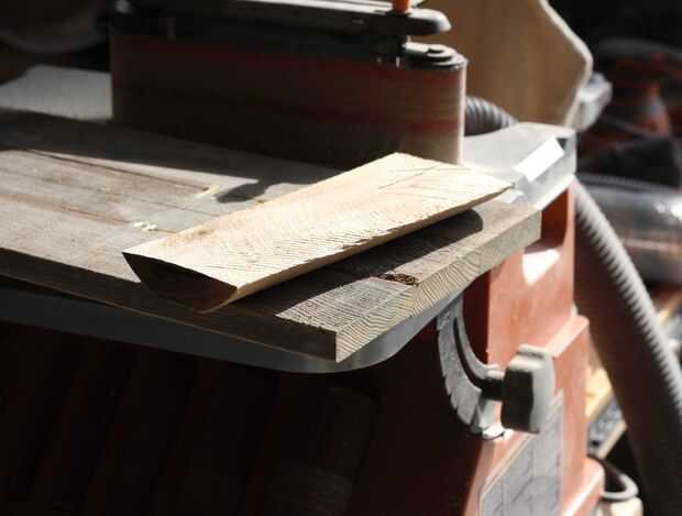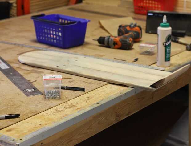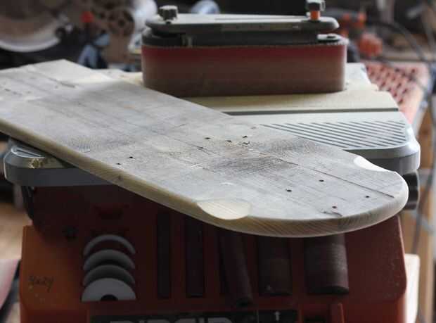 Para la cola de la patada, se utilizó un pedazo de la plataforma que naturalmente fue redondeado por un lado y cortar a la anchura de la cubierta. Lija suave, entonces utiliza el ángulo de la madera a la patada en su lugar en la parte posterior de la Junta usando azul de madera y tornillos de montaje.