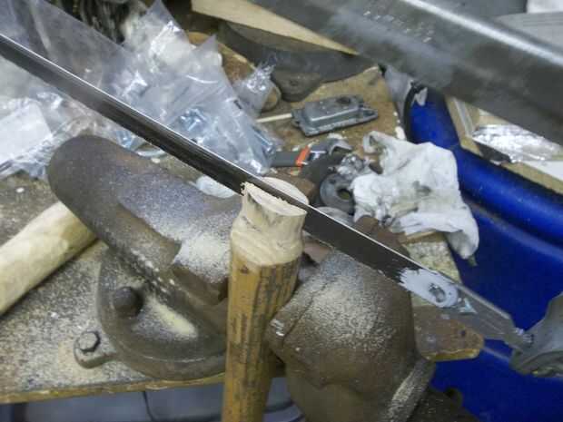 después de limpiar el interior de mi agujero que i un poco más tiene que caer en apretado, ahora tiene que cortar a lo largo de esa línea que marcaste anteriormente con una fina lámina, sólo usé una sierra para metales, hacen que sea tan profunda como la cabeza