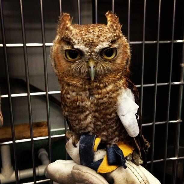 Aves más pequeñas tienden a ser menos peligroso y a menudo son buenas prácticas para una primera vez en el manejo de aves. Un ejemplo de una pequeña ave de rapiña es el buho del screech oriental.