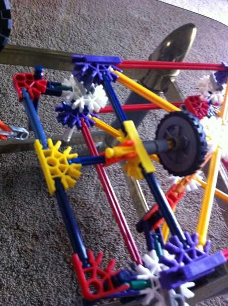 esto es una 4wd K'nex carro con puertas funcionales, un portón, acceso de baterías bajo el capó motor, un volante (dummy), cambio de marchas (dummy), asientos, llanta de repuesto y una cama. El sistema 4wd es rápidamente configurable para la impulsió