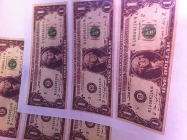 Hacer esto otra vez con $20, $10, $5 "s y $1.