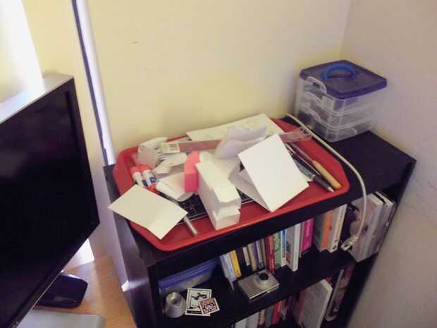 mi esposa y yo recientemente se mudó un apartamento nuevo, que es bastante más pequeño que antes. La mayoría de nuestras cosas no encajaba, incluyendo nuestro escritorio. Sin embargo, notamos rápidamente que no existía espacio muerto (espacio desperd