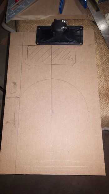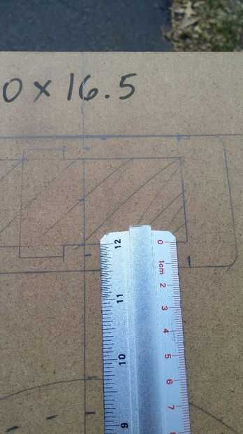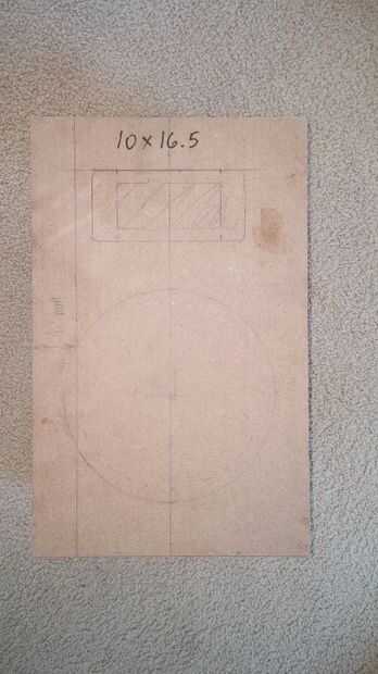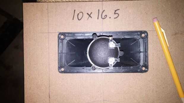 Uno de los tableros de 16,5 pulgadas x 10 pulgadas tendrán los recortes para los altavoces. Por simplicidad que he decidido tener los altavoces centrada de los lados y equidistantes de arriba a abajo.