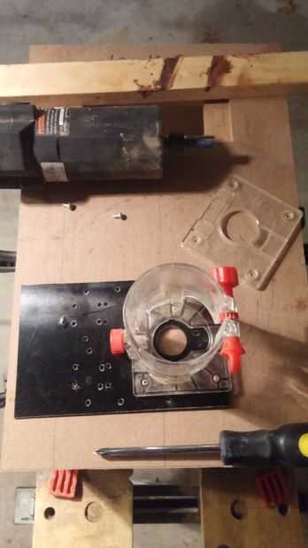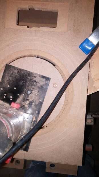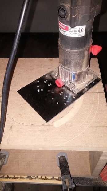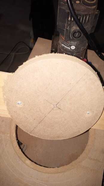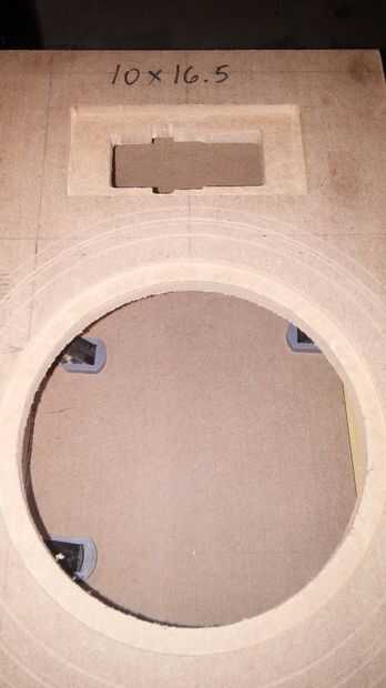 Hice el hueco del woofer 4 pulgadas radio con 1/2" recta router bits Pic 4 y 5.