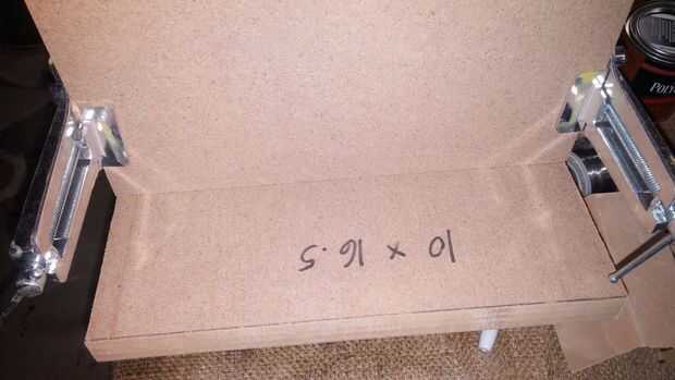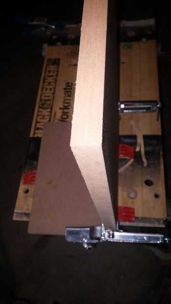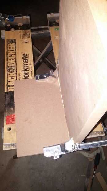 Foto 1 es una prueba seco asegurándose de que las 2 partes encajan firmemente en la articulación. Usé las abrazaderas de esquina para mantener el cuadrado de piezas. Solo tengo 2 abrazaderas por lo que pegué 2 piezas en el momento.
