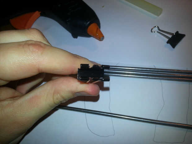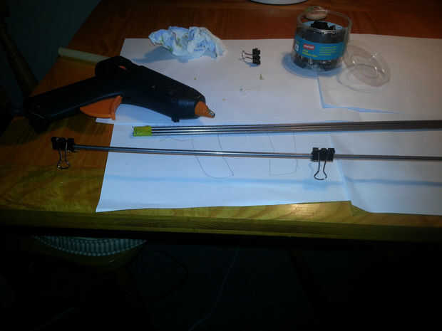 Deberás acabar con 4 x bulldog clips pegados a cada varilla, igualmente espaciada.