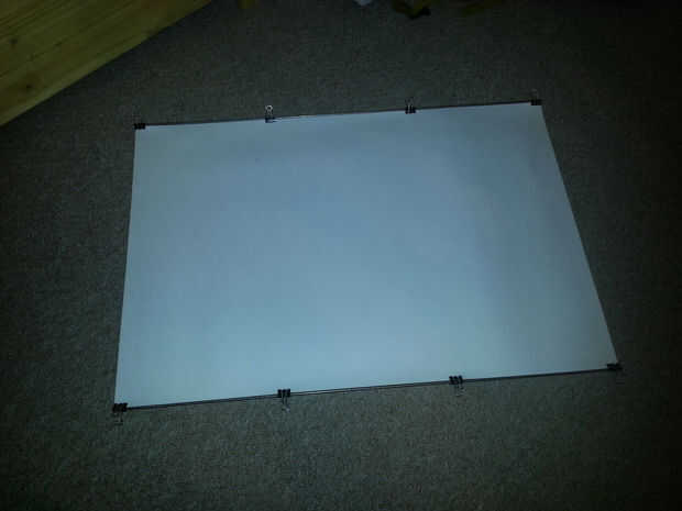 Este paso es bastante autoexplicativo: uso las manijas de los clips bulldog cuidadosamente hacer palanca los clips abren y fije a la parte superior y parte inferior del póster o impresión.