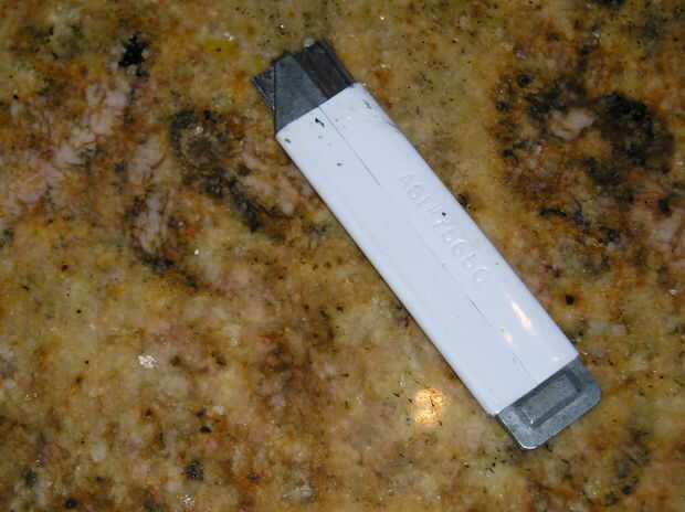 Cuchillo A BOXCUTTER. Una hoja fresca para que sea como agudo como puede ser. Esta es la clave de todo el proceso! Yo solía usar un cuchillo por supuesto, pero más a menudo que no, nunca fue lo suficientemente fuerte el cuchillo. Lo que debería haber sido una tarea muy fácil se hizo más onerosa.