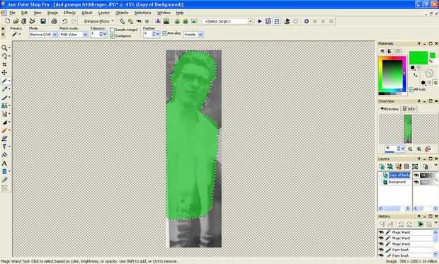 7. ahora para la diversión, seleccione la varita mágica de tu barra de herramientas (Tip: quizás tenga que haga clic en la flecha pequeña hacia la derecha de una herramienta para encontrar la herramienta que es no mostrar y luego seleccione la herramienta)