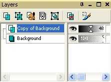 4. luego ir a su capas plataforma (si no mostrar haga clic en vista y paletas luego en capas) haga clic derecho la capa de fondo y duplícalo y ajuste de opacidad del 50%