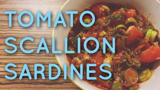 He encontrado esta receta de ricas sardinas en conservas con tomate, cebolla de verdeo, tomate salsa y ajo en polvo. También es posible comprar sardinas y otros pescados en salsa de tomate pero prefiero usar sardinas en aceite de oliva y salsa de tomate por mi cuenta.