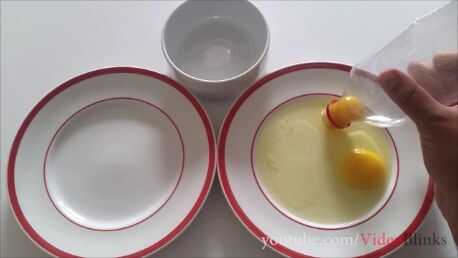 Manera fácil de separar las claras de huevo yema de huevo (2 / 3 paso)